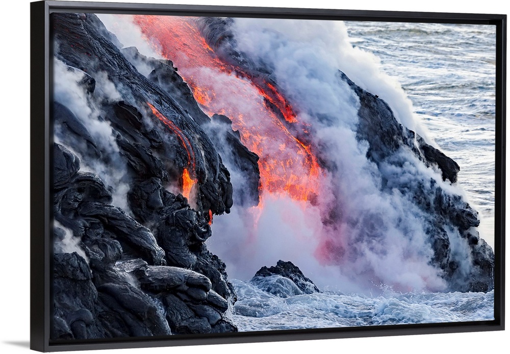 <p>The Pahoehoe lava flowing from Kilauea has reached the Pacific ocean near Kalapana; Island of Hawaii, Hawaii, United States of America</p>