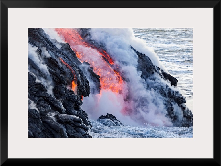 <p>The Pahoehoe lava flowing from Kilauea has reached the Pacific ocean near Kalapana; Island of Hawaii, Hawaii, United States of America</p>