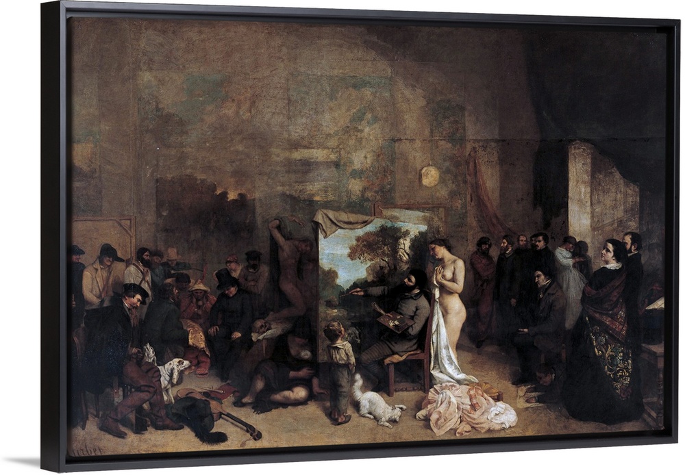 <p>France, Ile de France, Paris, Muse dOrsay. All. Model anatomy painter Courbet canvas easel palette study child cat men women bystanders onlookers coffee table books black ocher green white. (109969) Everett Collection\Mondadori Portfolio</p>