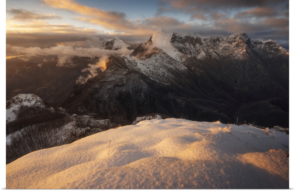 <p>The Pania della Croce and Pania Secca seen from the Monte Croce during a winter sunset in the Apuan Alps, Tuscany.</p>