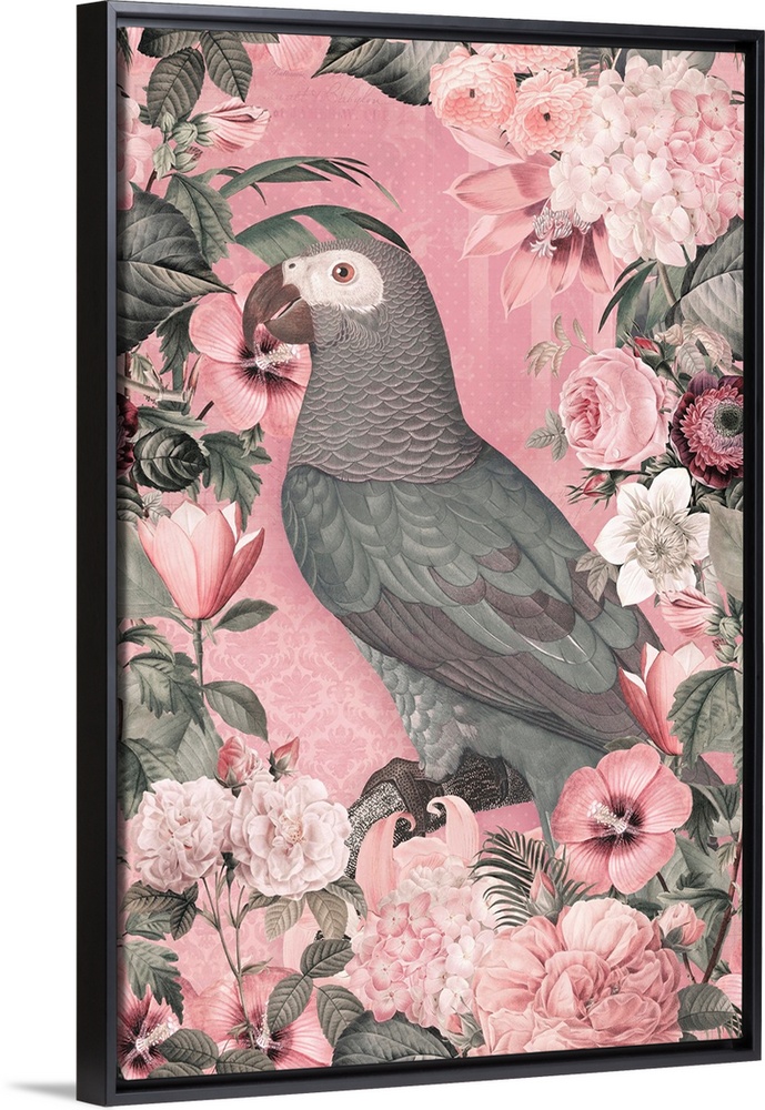 Art Traditional Contemporary Art Plants and Flowers Florals Graphic Art Andrea Haase Pink Wall Art Wildlife Bird Parrot