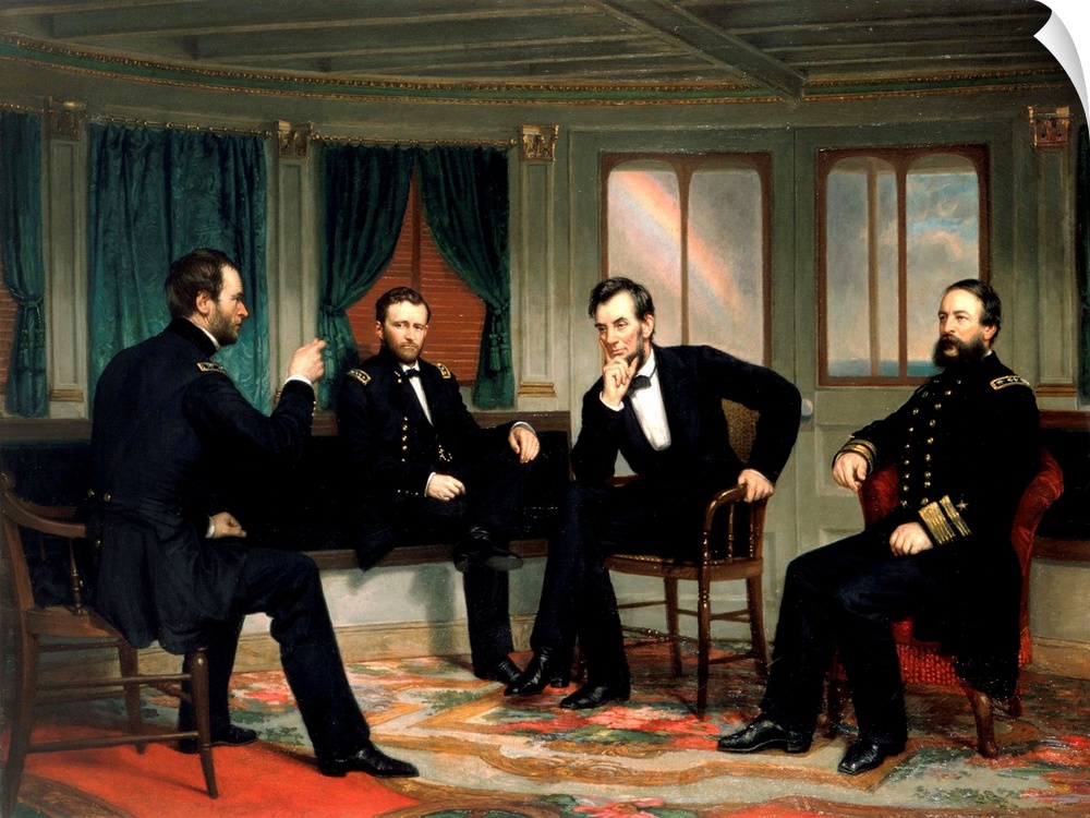 <p>Circa 1868, oil on canvas, 119.7 x 159.1 cm (47.13 x 62.64 in). Located in the White House, Washington, DC, USA. Sherman, Grant, Lincoln, and Porter aboard the River Queen on March 27th</p>