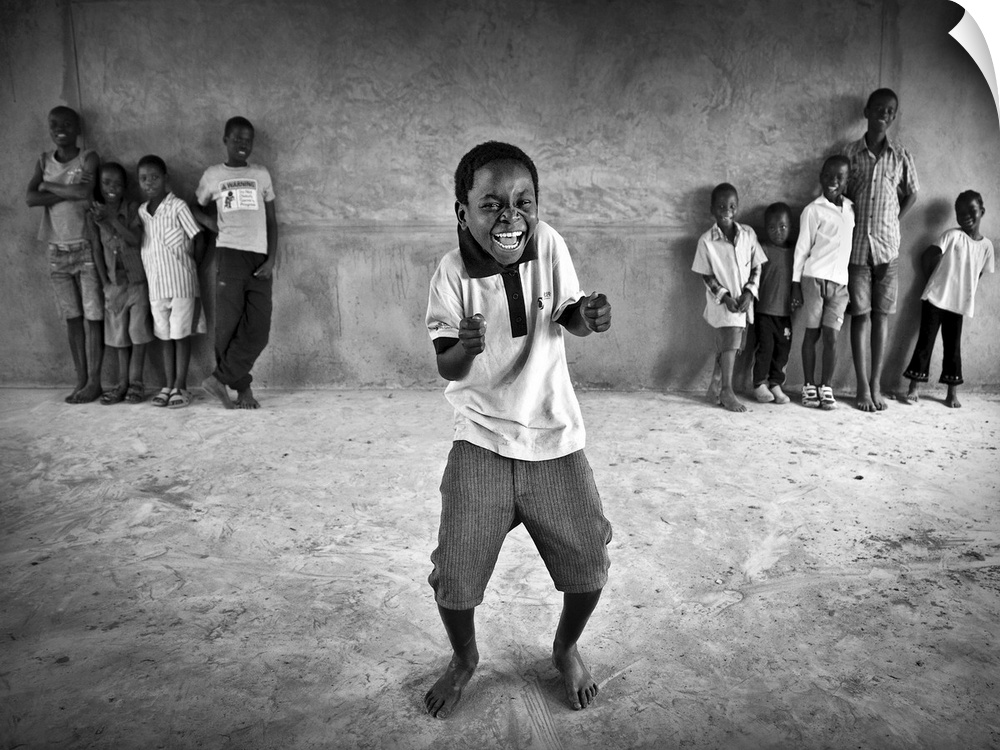 <p>Portrait of a little boy dancing and have a laugh while other children watch him.</p>