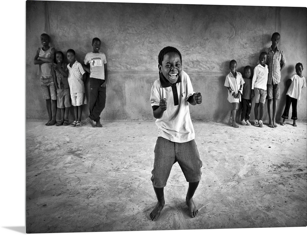 <p>Portrait of a little boy dancing and have a laugh while other children watch him.</p>