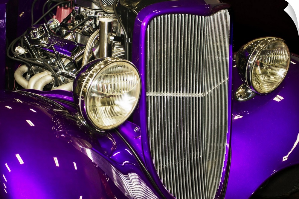 <p>Fine art photograph of a vintage car. The engine is visible behind the headlights and grill.</p>