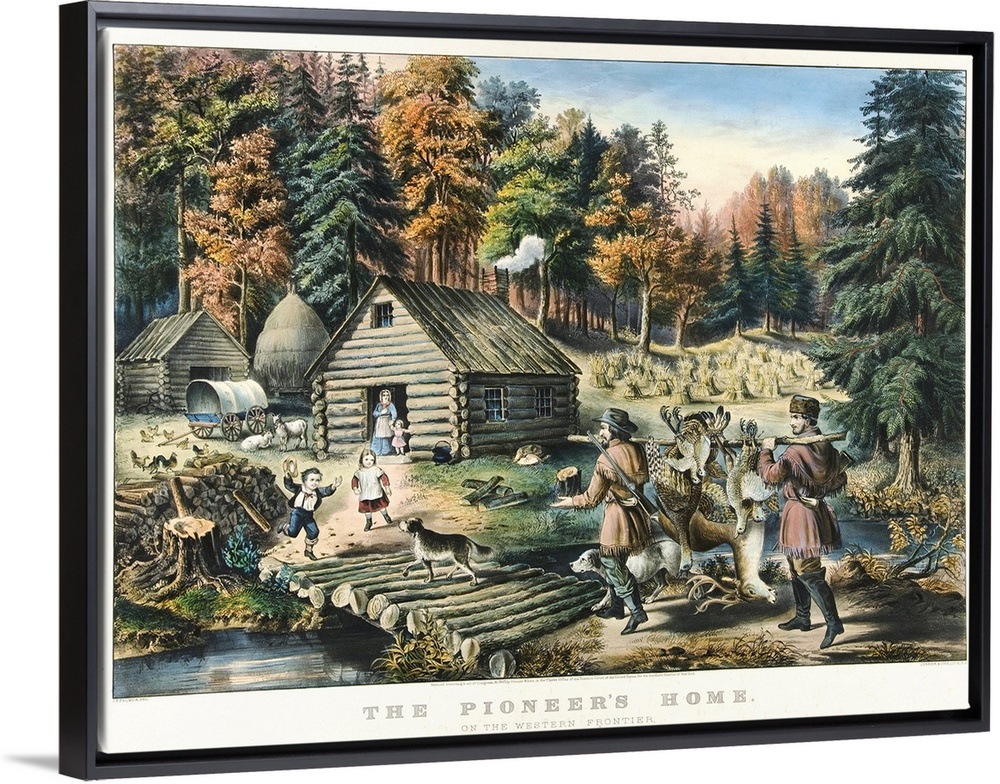 <p>The Pioneer's Home on the Western Frontier, 1867 (collour lithograph) by Currier, N. (1813-88) and Ives, J.M. (1824-95)</p>