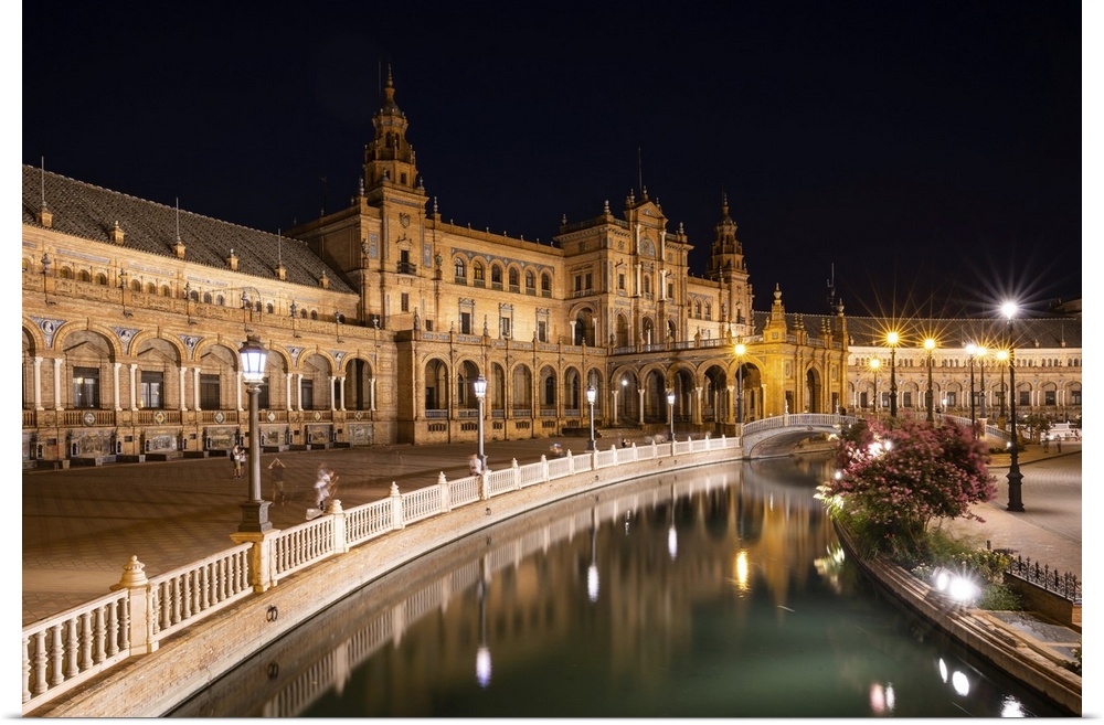 <p>The Plaza de Espana at night, Parque de Maria Luisa, Seville, Andalusia, Spain, Europe</p>