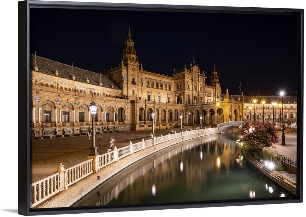 <p>The Plaza de Espana at night, Parque de Maria Luisa, Seville, Andalusia, Spain, Europe</p>
