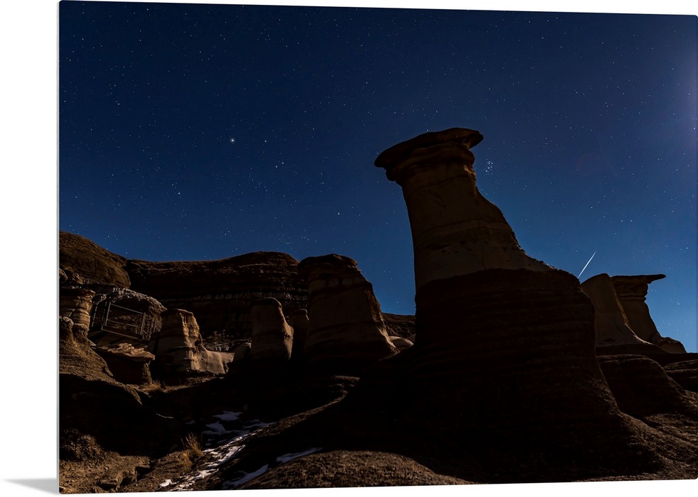 <p>The Pleiades appearing from behind the Hoodoos in silhouette.</p>
