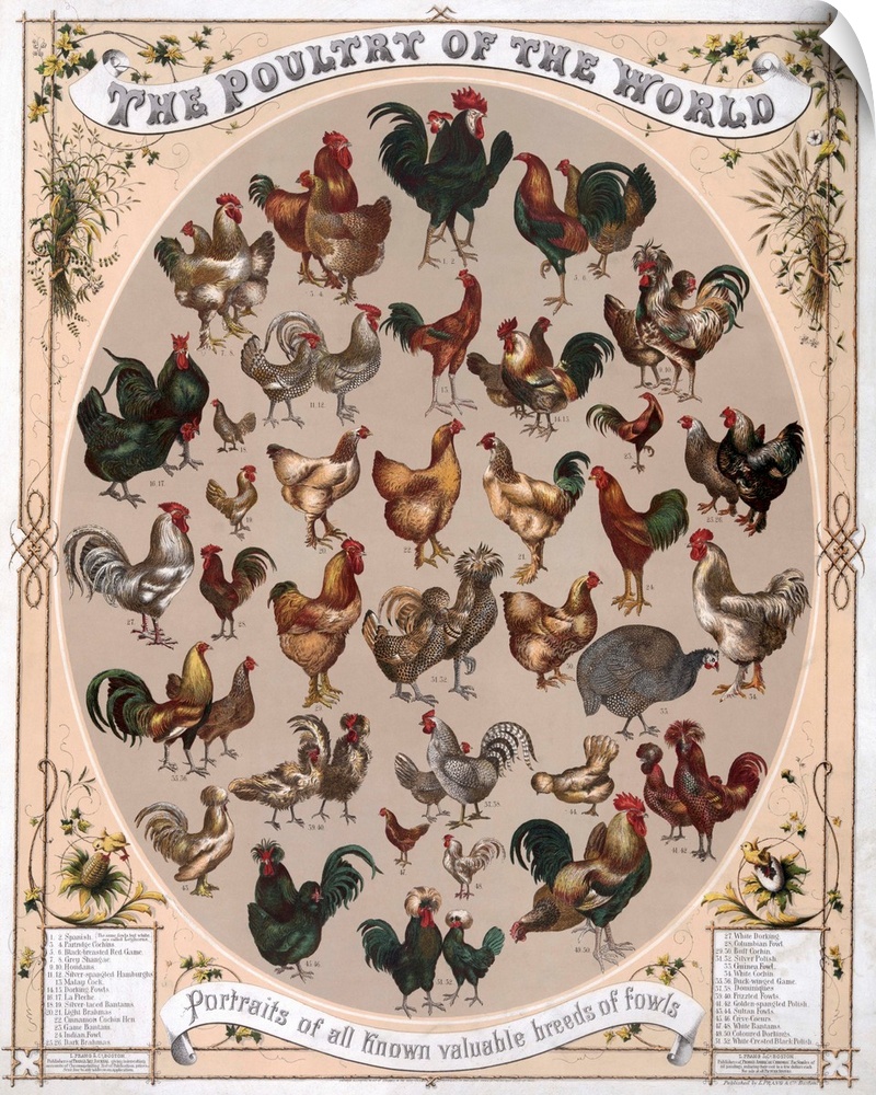 <p>'The Poultry of the World - Portraits of all known valuable breeds of fowls.' Chromolithograph, c1868.</p>