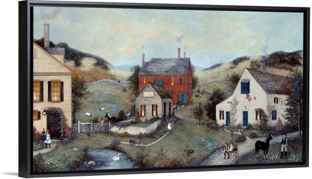 <p>A contemporary painting of a countryside village scene.</p>