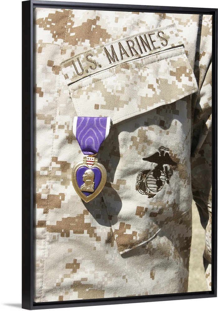 <p>Marine Corps Base Camp Lejeune, North Carolina, February 18, 2004 ae" The Purple Heart award hangs over the heart of a U.S. Marine.</p>