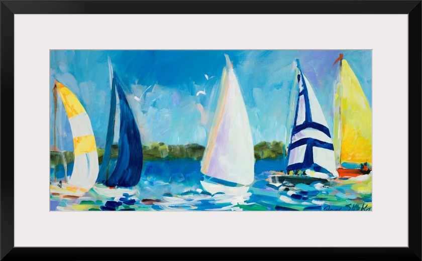 Art Beach House Décor Blue Wall Art Contemporary Art Painting Jane Slivka Sports Sailing Transportation Boat Sailboat