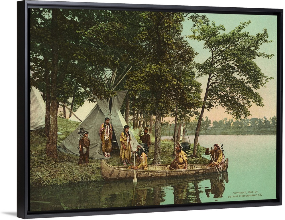 <p>Hand colored photograph of the return of the hunters.</p>