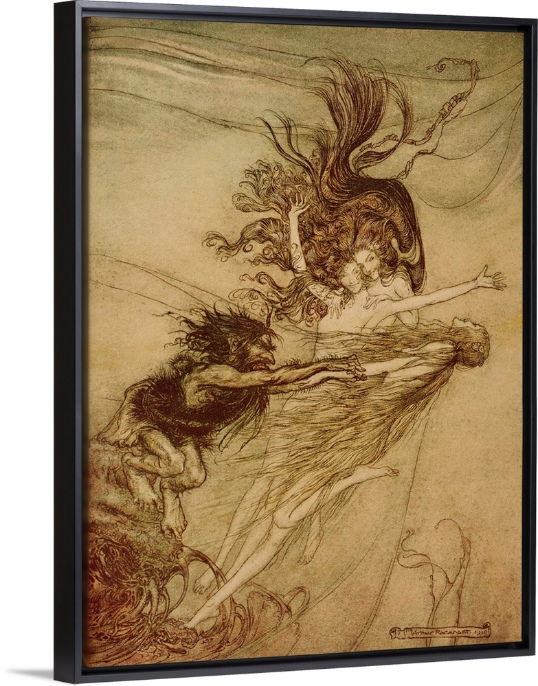 <p>BAL4210 The Rhinemaidens teasing Alberich from 'The Rhinegold and The Valkyrie' by Richard Wagner, 1910; by Rackham, Arthur (1867-1939); Private Collection; English, in copyright until 2010</p>