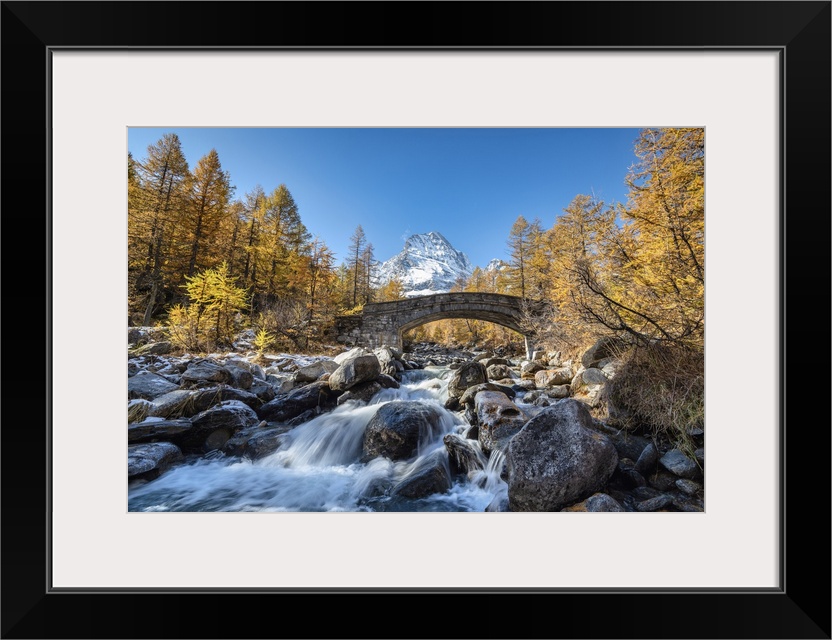 <p>The river Cairasca and Monte Leone in the background during autumn, Alpe Veglia, Val Cairasca valley, Divedro valley, Ossola valley, Varzo, Piedmont, Italy. Piedmont, Western Europe, Italy.</p>