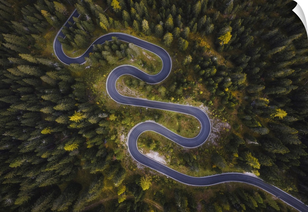 <p>An aerial view of the road leading to the Giau Pass from Cortina d'Ampezzo, in the Dolomites, Italy.</p>