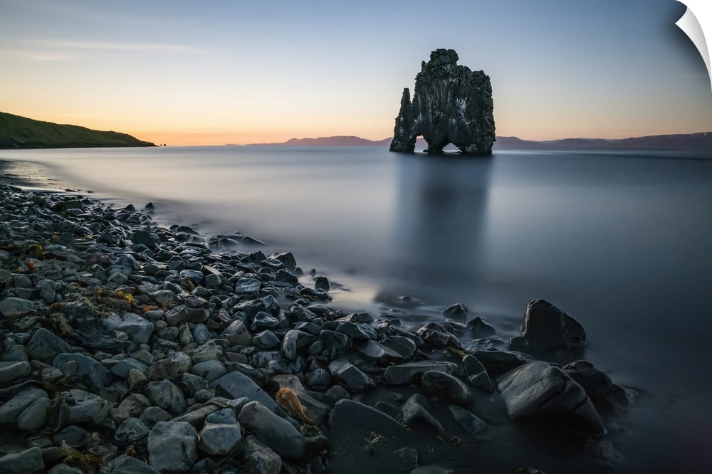<p>The rock formation known as Hvitserkur, at sunset, Northern Iceland; Iceland</p>