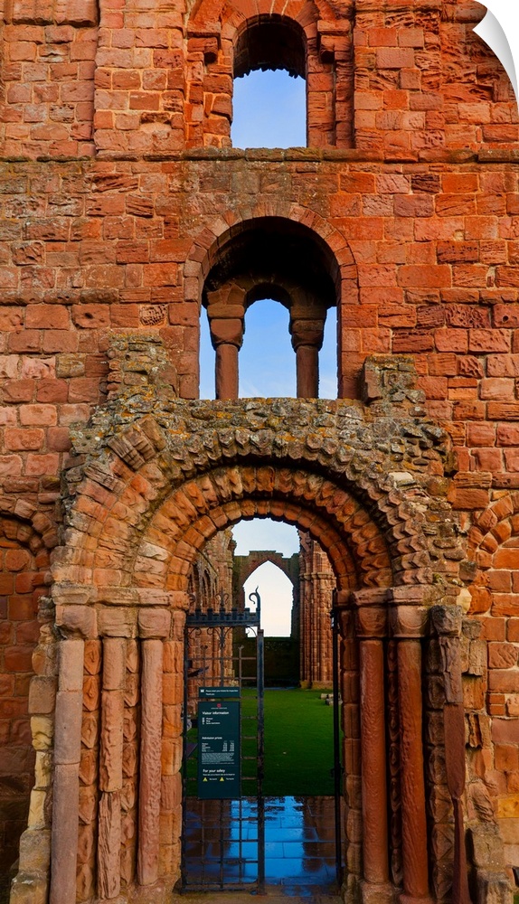 <p>The romanesque doorway in the monastery of lindisfarne, holy island, near berwick-upon-tweed, northumberland, England.</p>