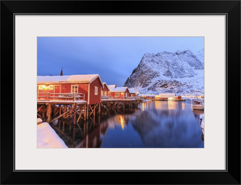 <p>The Rorbu, the Norwegian red houses built on stilts in the bay of Reine in the Lofoten Islands, Arctic, Norway, Scandinavia, Europe</p>