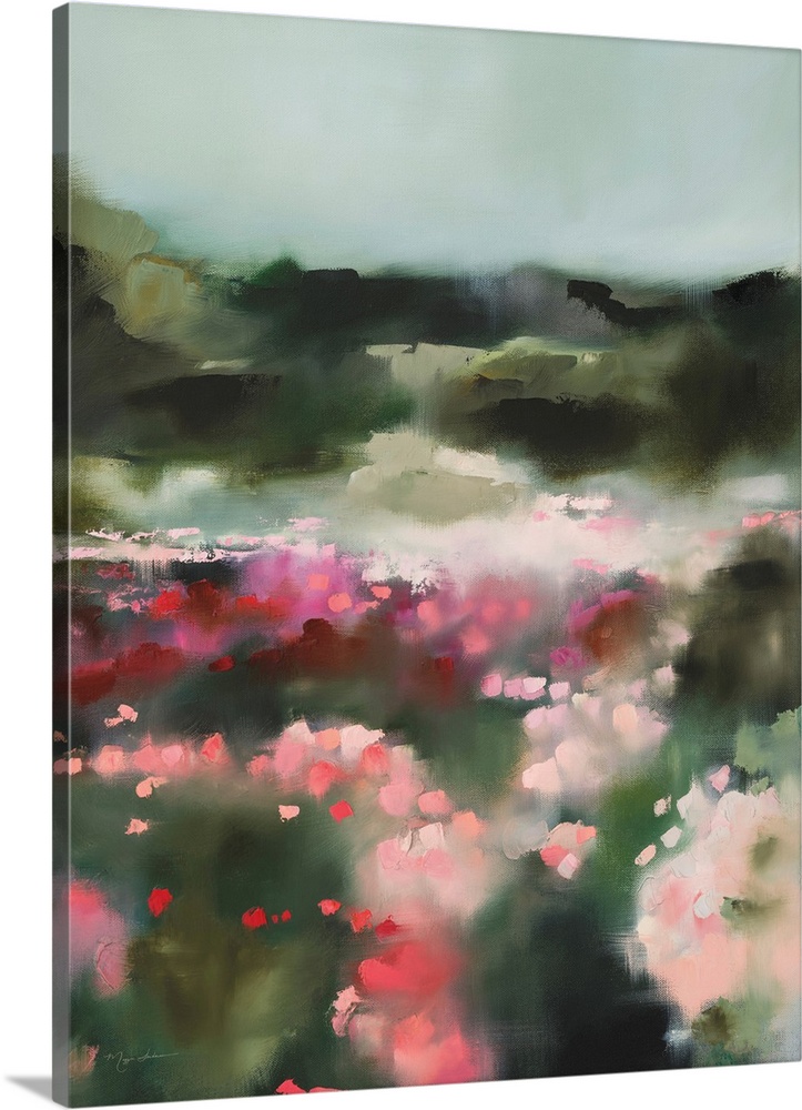 Art Contemporary and Modern Pink and Green Contemporary Art Spring Landscapes Green Wall Art Landscapes Countryside Painting