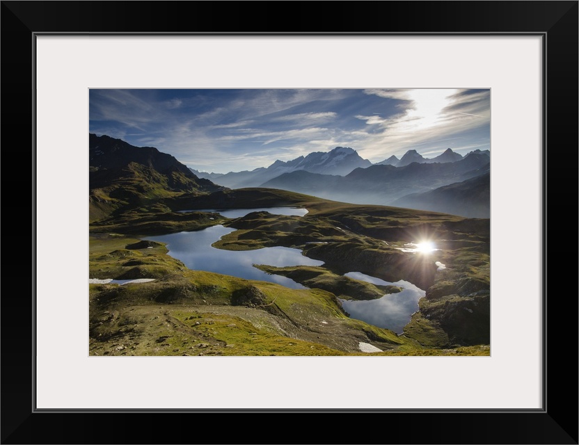 <p>The Rosset lake and Leia lake appearing in the first summer's morning light, with Gran Paradiso massif in the background. (Valsavarenche, Aosta Valley).</p>