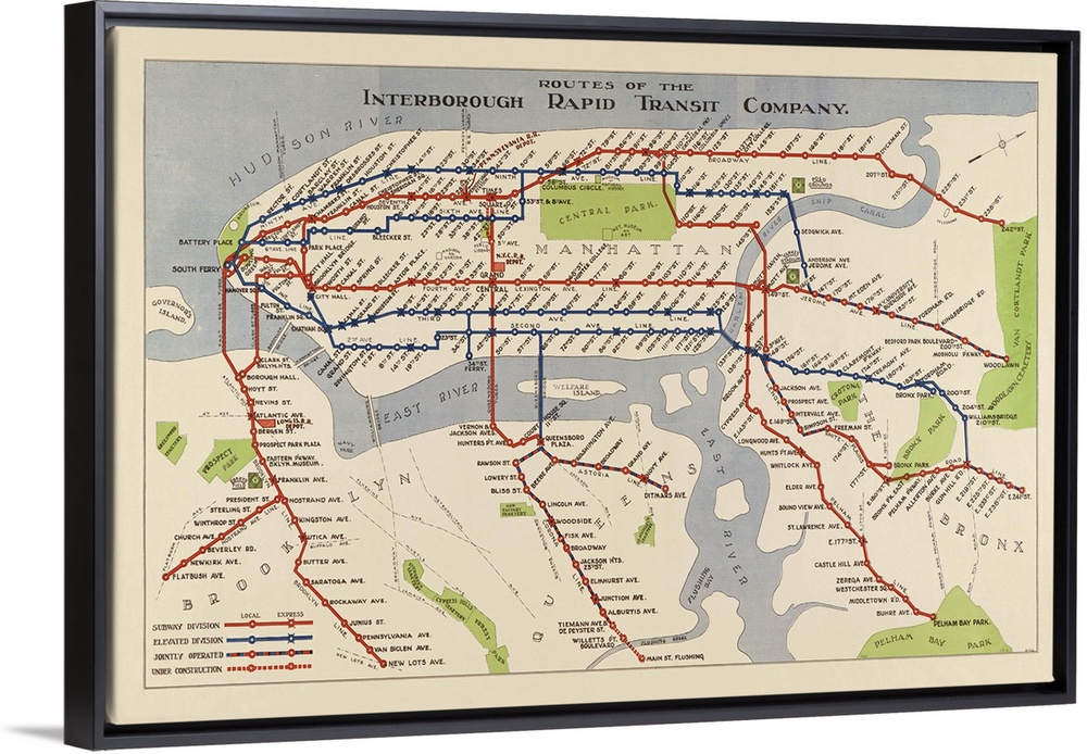 <p>Shows the routes of the New York City subway in 1924, then owned by the Interborough Rapid Transit Company (IRT).</p>
