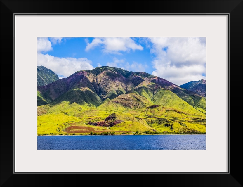 <p>The rugged landscape of the island of Maui under a blue sky with cloud, Maui, Hawaii, United States of America</p>