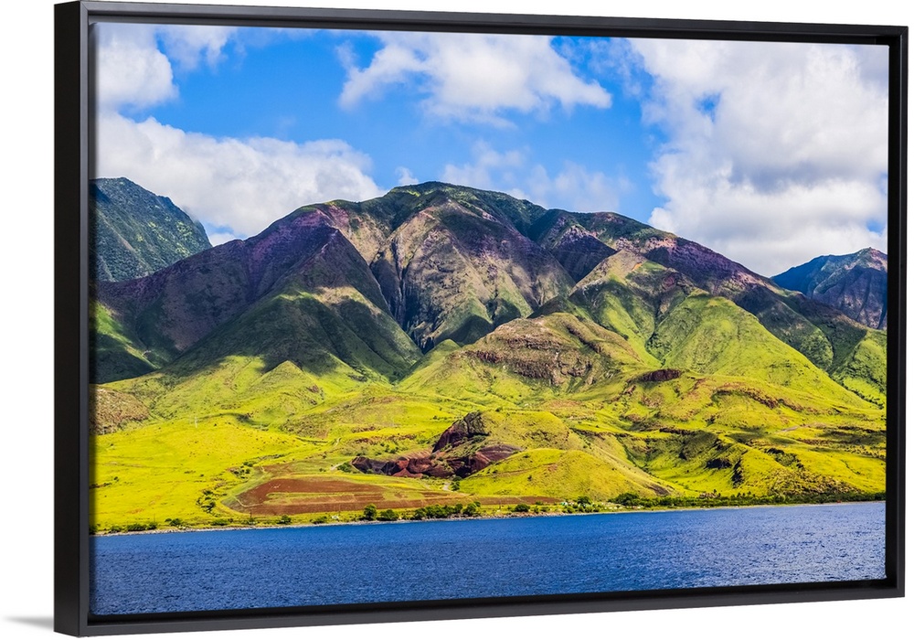 <p>The rugged landscape of the island of Maui under a blue sky with cloud, Maui, Hawaii, United States of America</p>