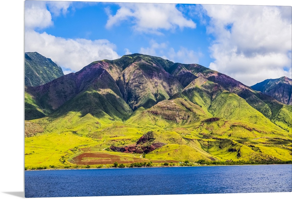 <p>The rugged landscape of the island of Maui under a blue sky with cloud, Maui, Hawaii, United States of America</p>