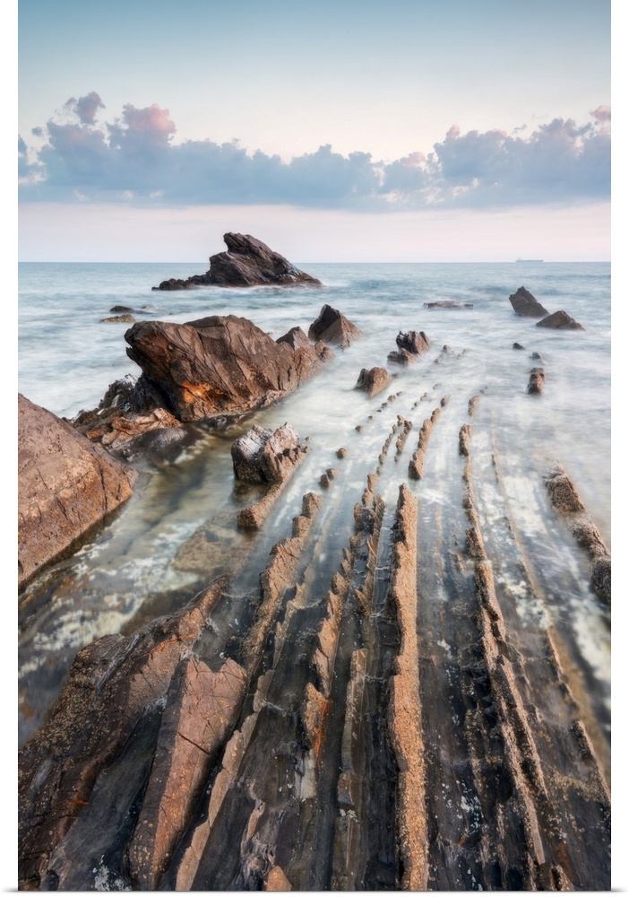 <p>The sea and the rocks of Antignano di Livorno at sunset, Livorno province, Tuscany, Italy.</p>