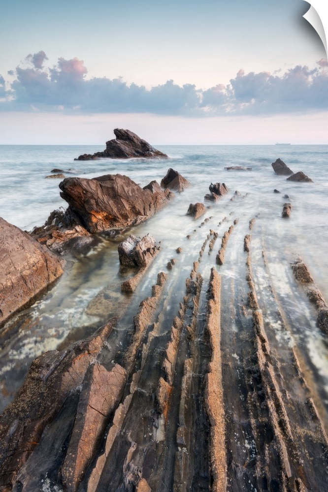 <p>The sea and the rocks of Antignano di Livorno at sunset, Livorno province, Tuscany, Italy.</p>