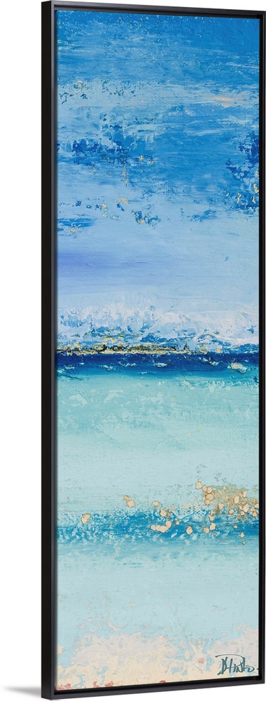 <p>Abstract painting of a light blue colorscape resembling the ocean from a beach view.</p>
