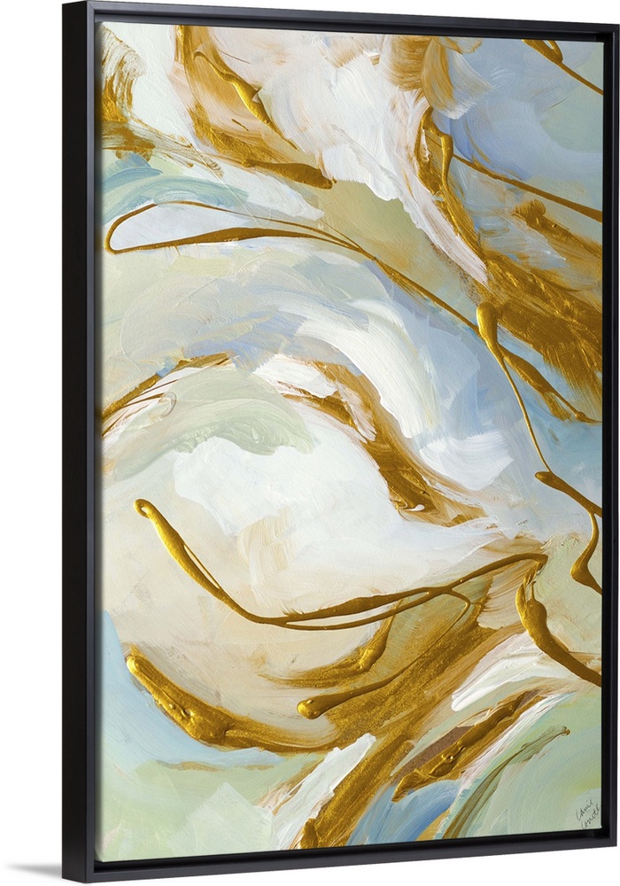 <p>Abstract artwork in white with golden swirls.</p>