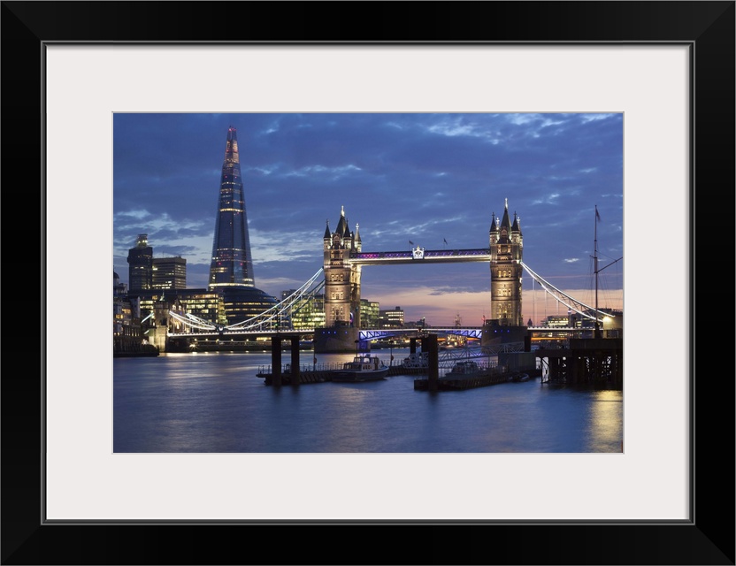 <p>The Shard and Tower Bridge on the River Thames at night, London, England, United Kingdom, Europe.</p>