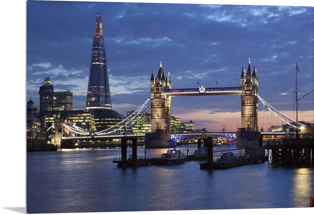 <p>The Shard and Tower Bridge on the River Thames at night, London, England, United Kingdom, Europe.</p>