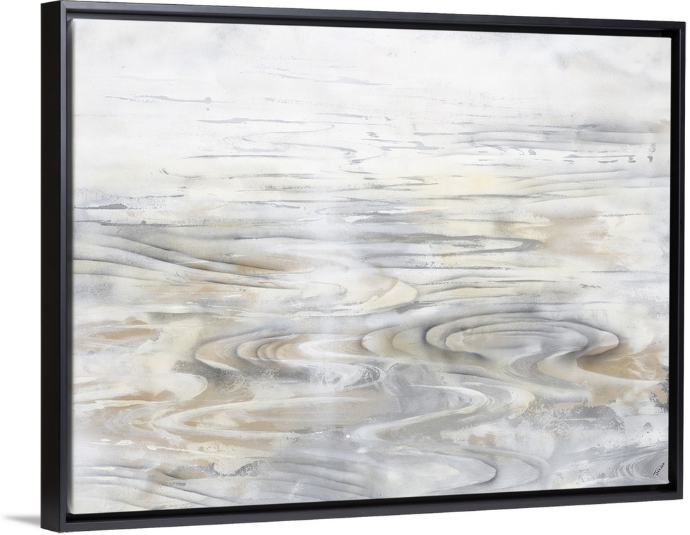 <p>Contemporary artwork of faint ripples in a body of water in tones of gray and brown.</p>