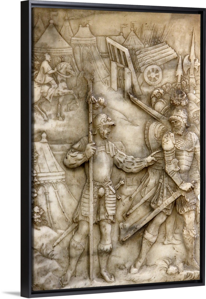 <p>Foundation's low relief on the tomb of Francis 1 King of France and Claude of France depicting the siege of Carignan, Basilica of St. Denis, Seine-St. Denis, Paris, France, Europe.</p>