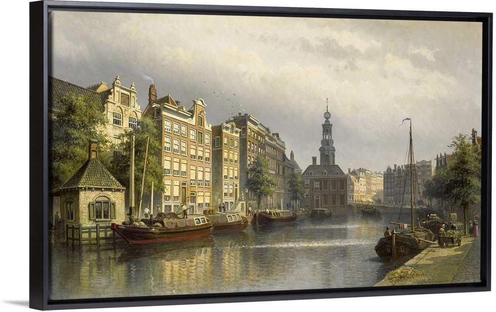 <p>The Singel, Amsterdam, View Toward the Mint, by Eduard Alexander Hilverdink, 1884-86. Dutch painting. The Singel encircled Amsterdam as a moat in the Middle Ages until 1585. By the 1800s it was the inner-most canal of the city's semicircular ring.</p>