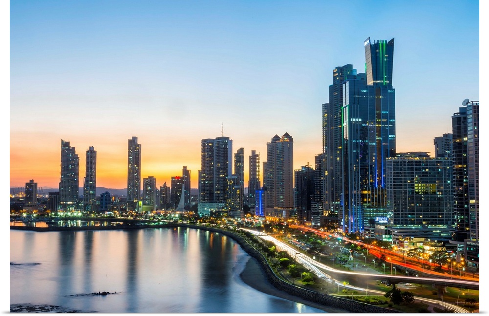 <p>The skyline of Panama City at night, Panama City, Panama</p>