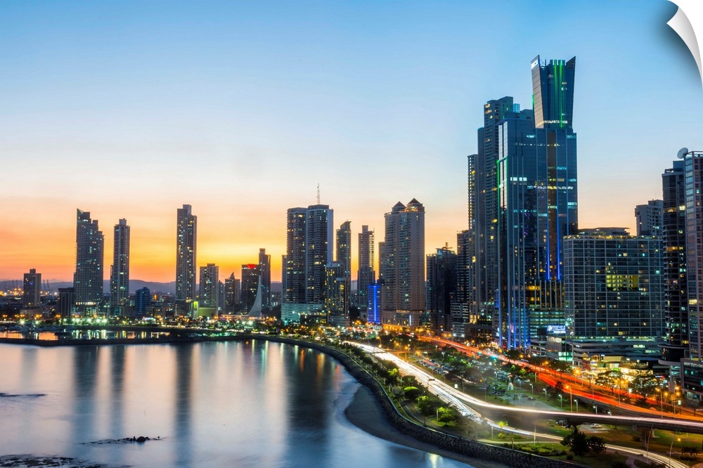 <p>The skyline of Panama City at night, Panama City, Panama</p>