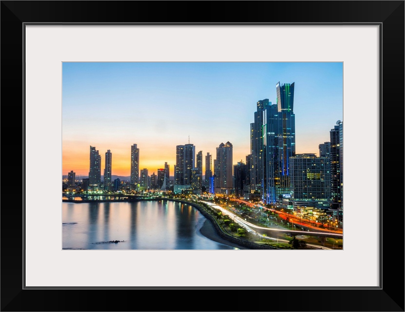 <p>The skyline of Panama City at night, Panama City, Panama</p>