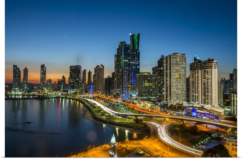 <p>The skyline of Panama City at night, Panama City, Panama</p>