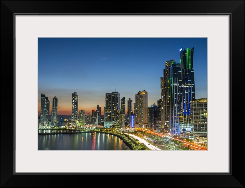 <p>The skyline of Panama city at night, Panama City, Panama</p>
