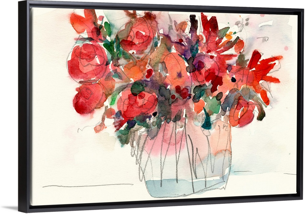 African-American Art Still Life and Florals Art Contemporary Art Plants and Flowers Samuel Dixon Florals Painting Red Wall Art Watercolor