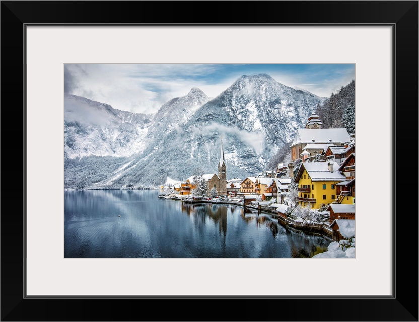 <p>The snow covered village of Hallstatt in the Austrian Alps during winter time</p>