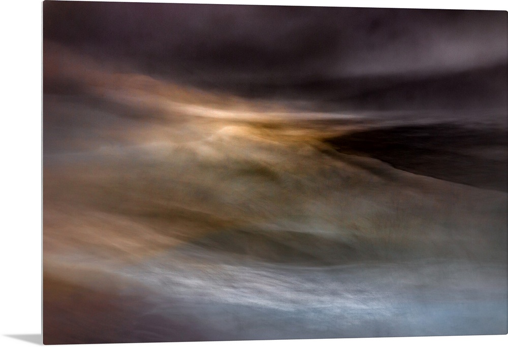 <p>An impressionistic dreamy blurred Turneresque seascape of swirling water and sky in blues, oranges and silvery tones full of life and movement.</p>