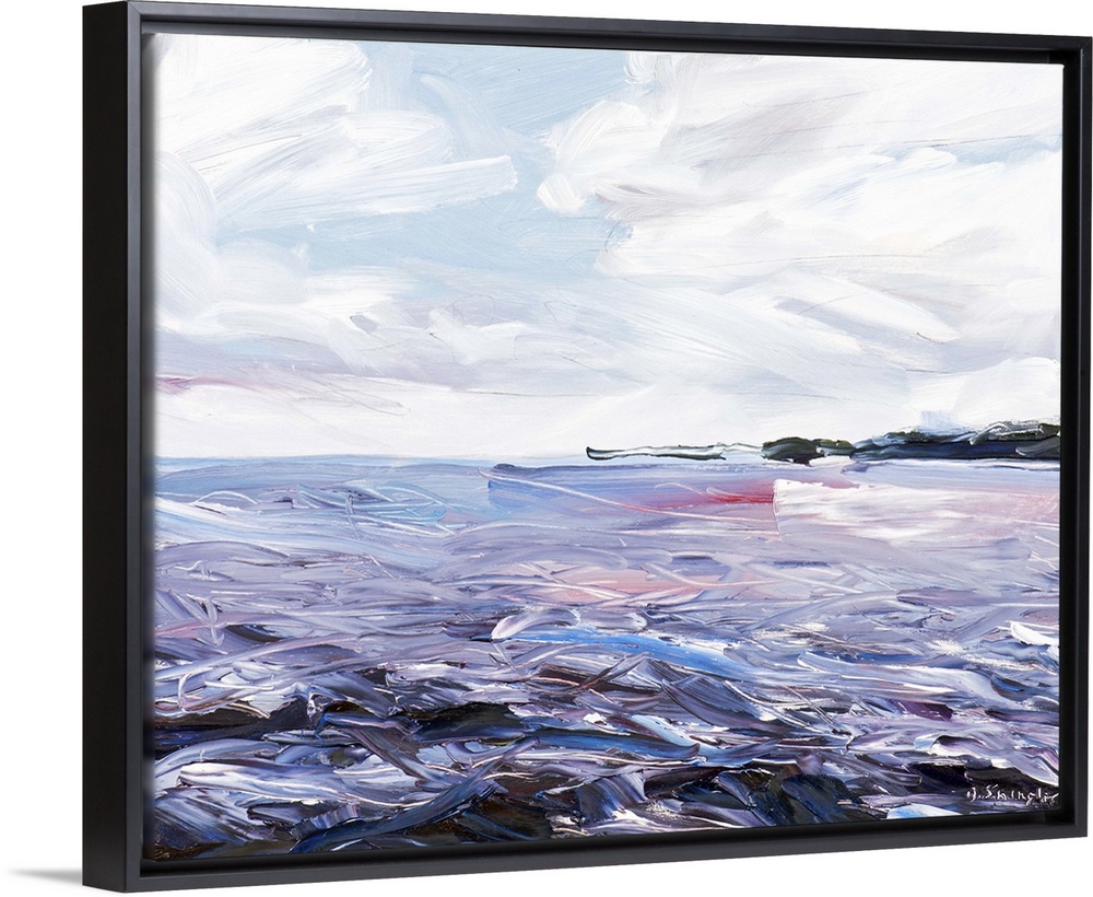 <p>Contemporary painting of a sound under a cloudy sky.</p>