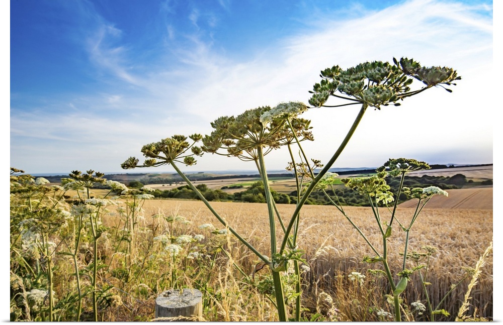 <p>Scenic rural agricultural landscape of the South Downs in West Sussex England during summer.</p>