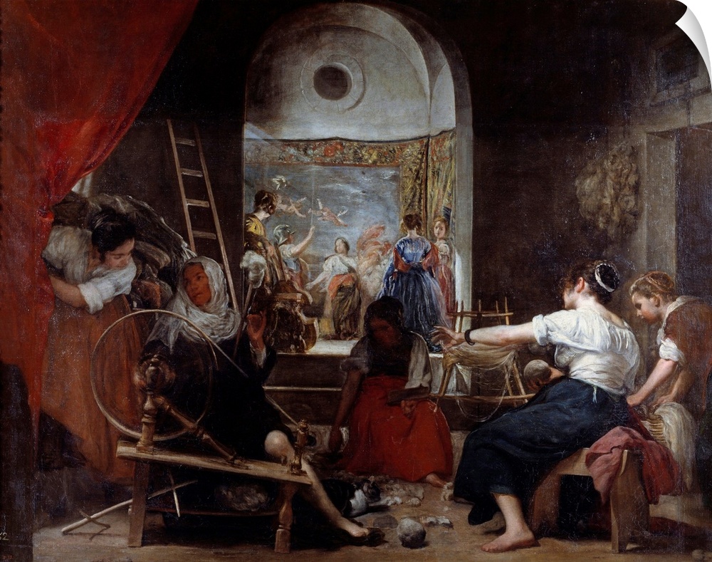 <p>The Spinners, Las Hilanderas or The fable of Arachne. Painting by Diego Rodriguez de Silva y Velazquez (Velasquez, 1599-1660), c. 1653. 2,2 x 2,89 m. Prado Museum, Madrid, Spain</p>
